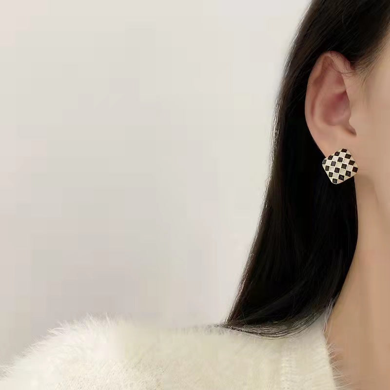 Studded Earrings Chessboard Black made of stainless steel for greater durability.