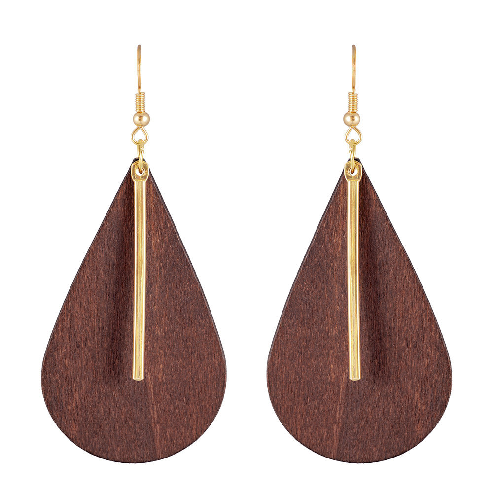 Wooden Drop Earrings, made of natural wood, gold details, metal clasp and with colors that do not wear out easily, for greater durability over time.