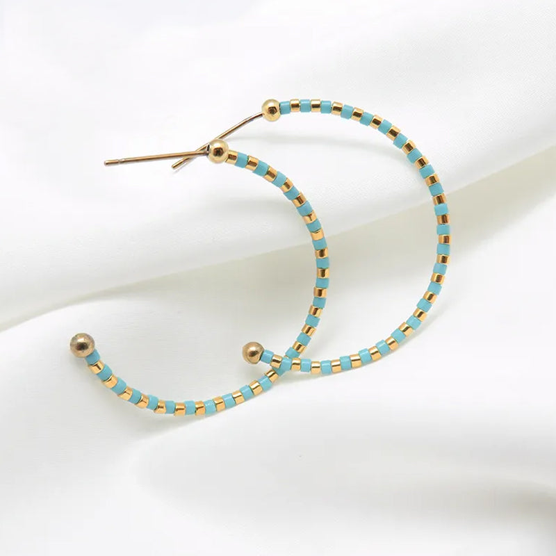 Earrings Hoops 3/4 two-tone turquoise made of stainless steel and stone, for greater durability over time.