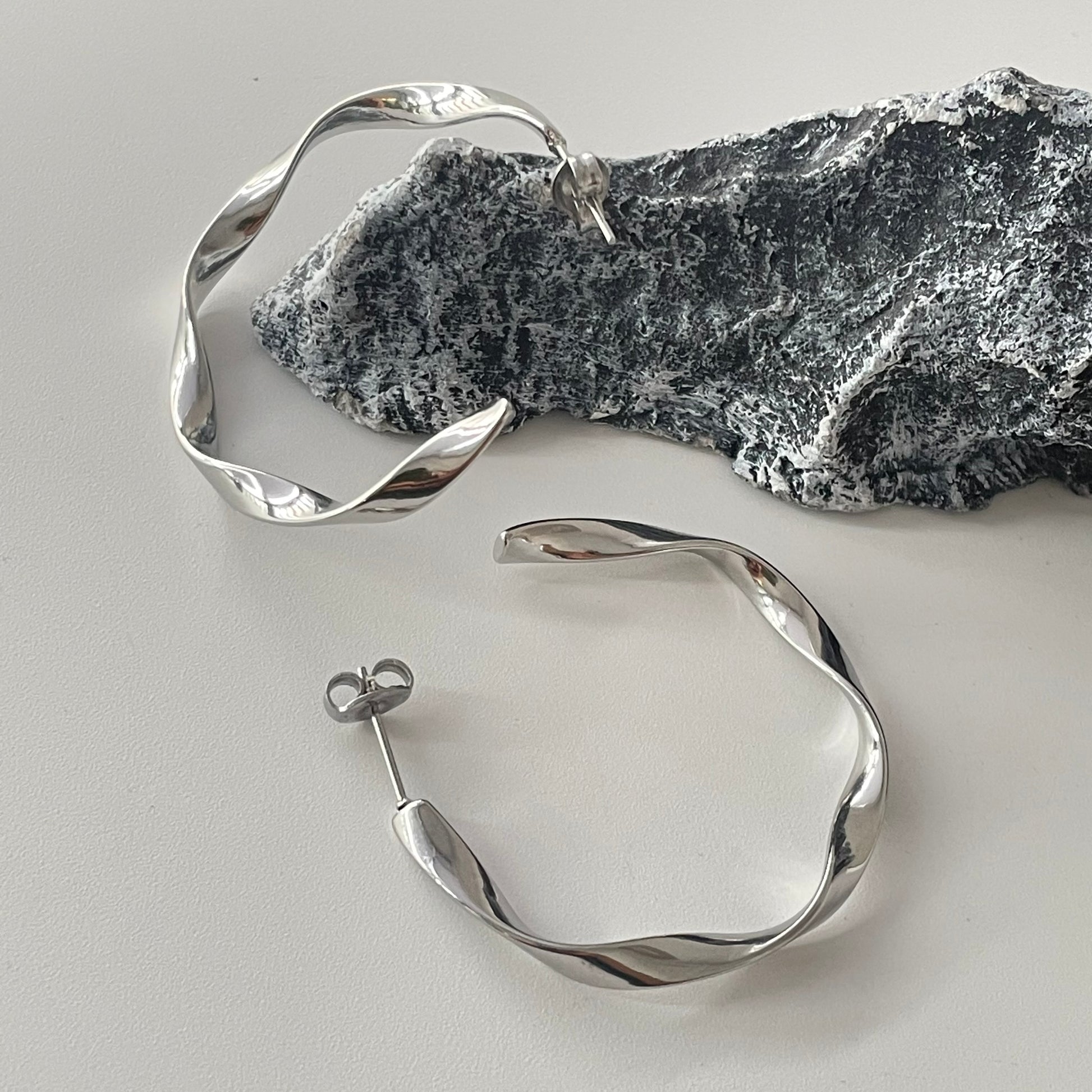 Σκουλαρίκια Κρίκοι Στριφτοί Ασημί διαμέτρου 3.5 εκ. φτιαγμένοι από ανοξείδωτο ατσάλι για μεγαλύτερη ανθεκτικότητα στον χρόνο.